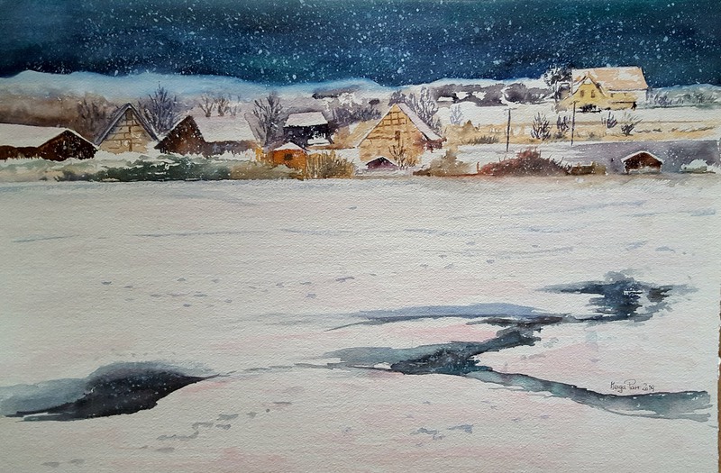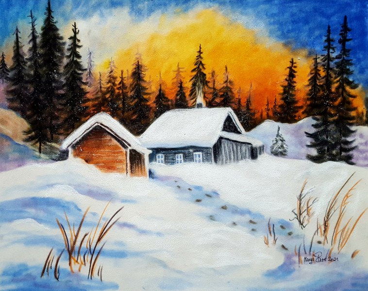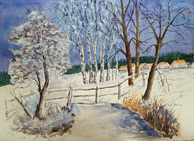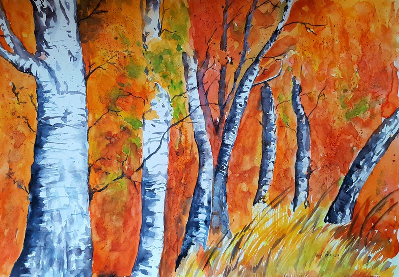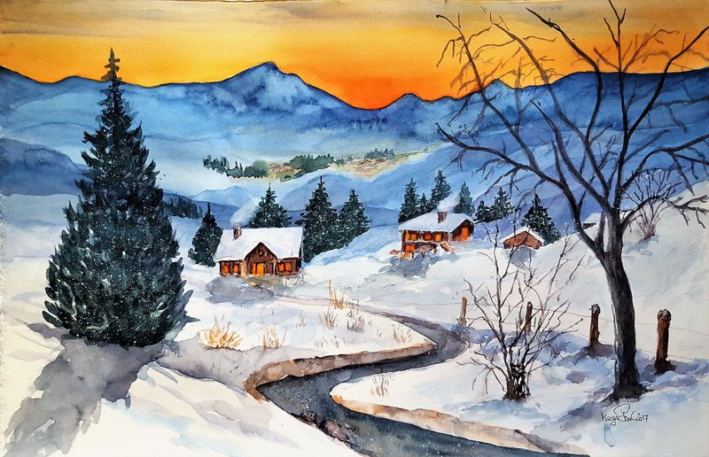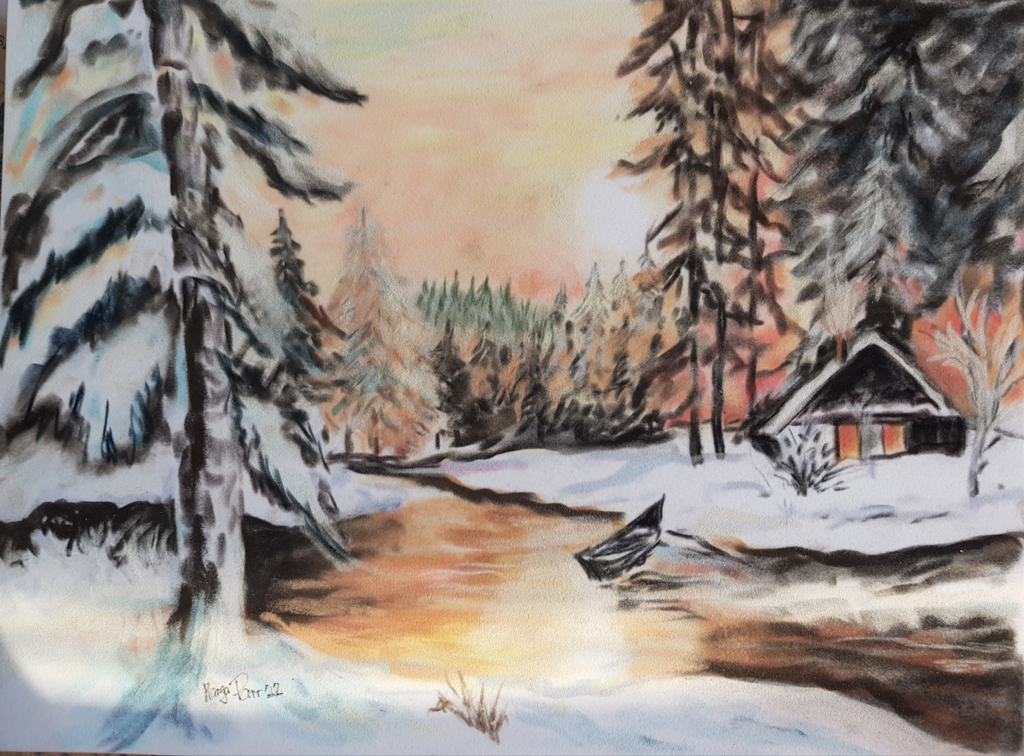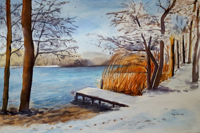 Herbst- und Winter Bilder in Aquarell, Acryl und Pastell