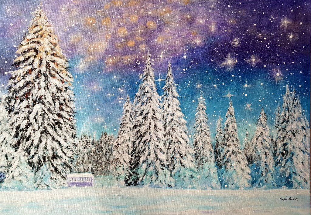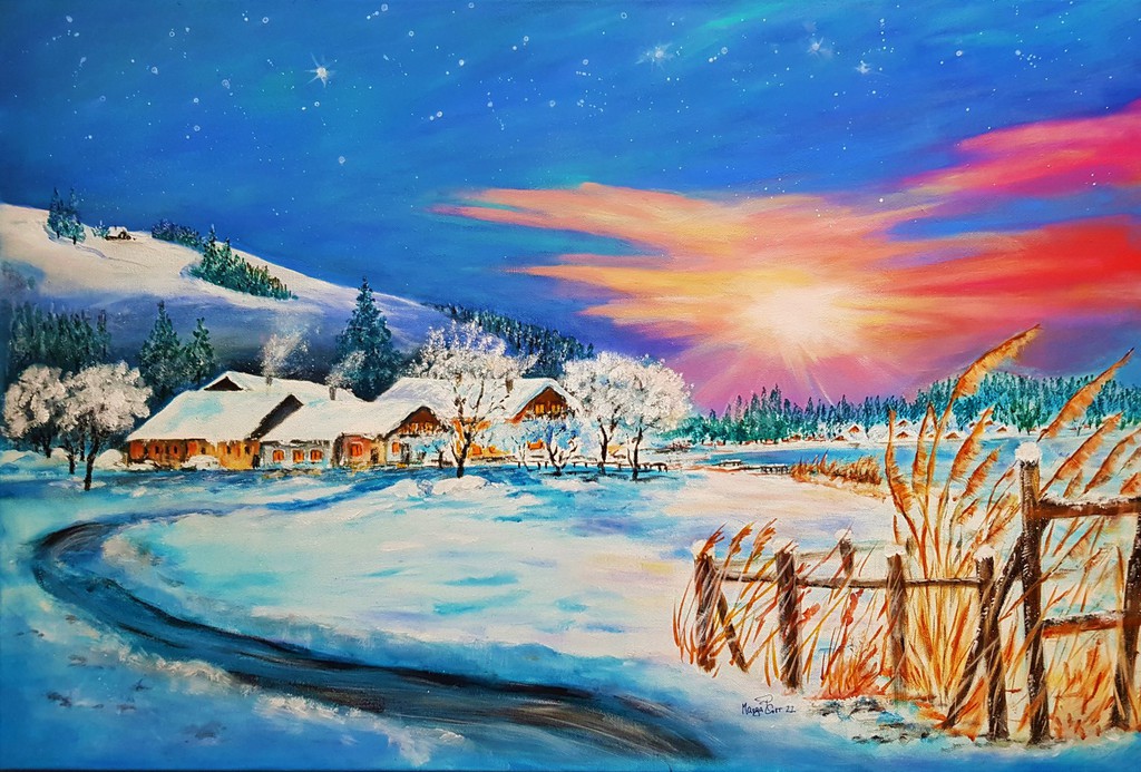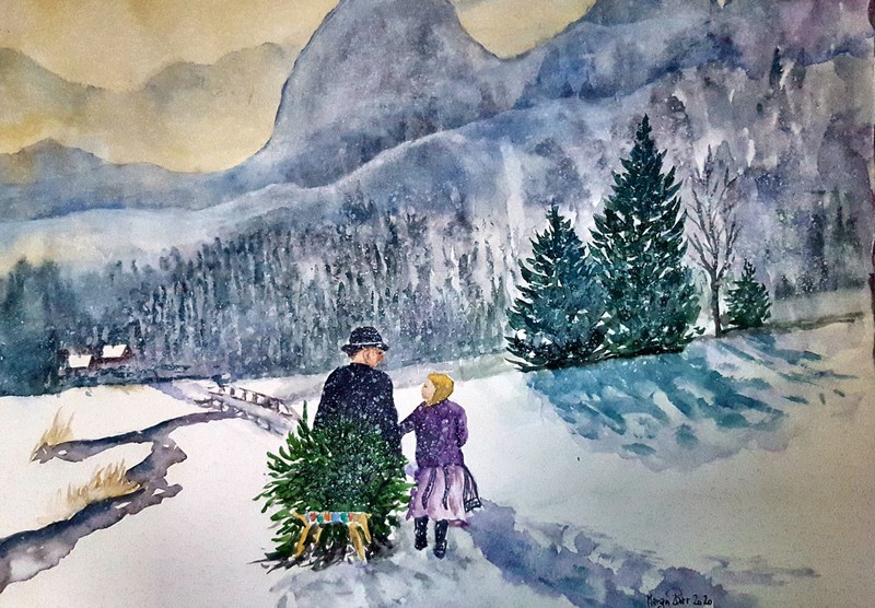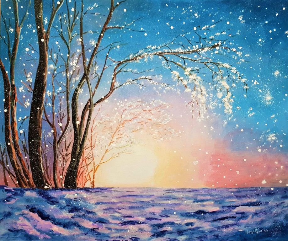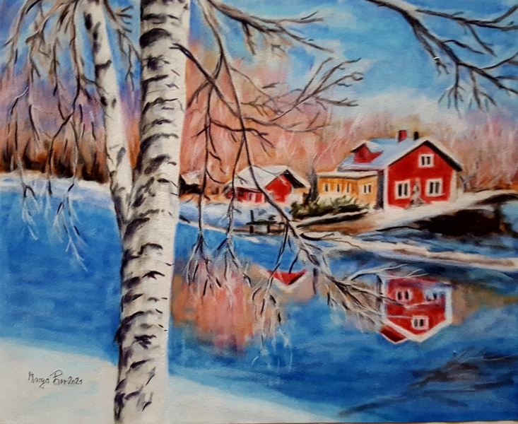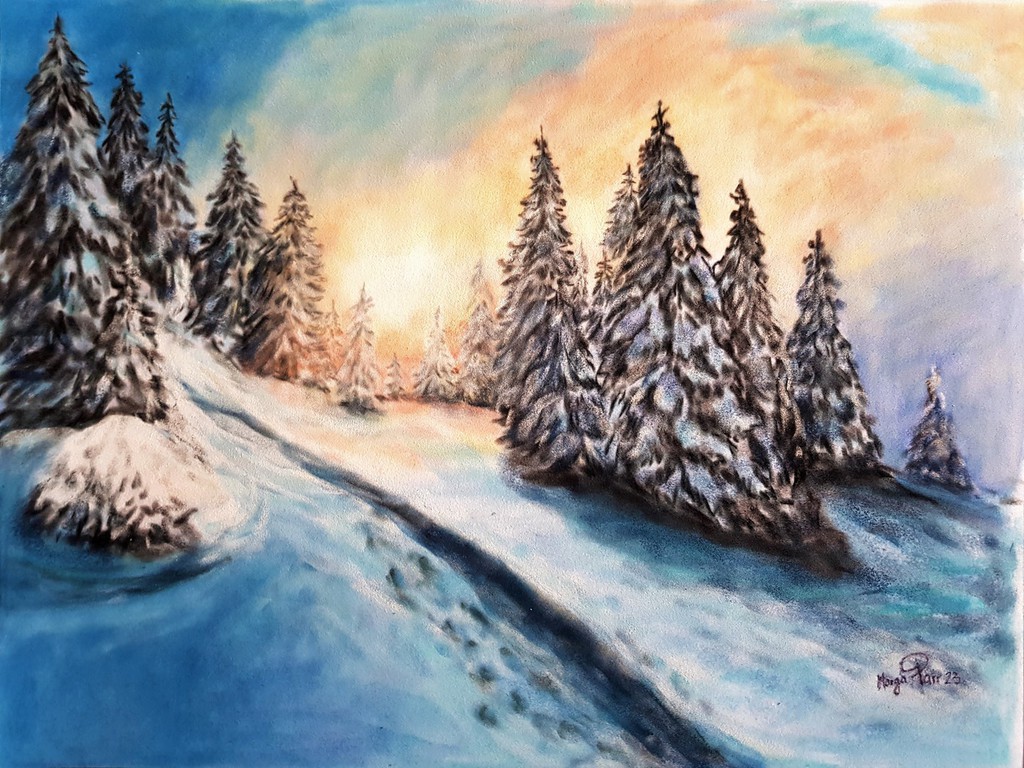 Herbst- und Winter Bilder in Aquarell, Acryl und Pastell